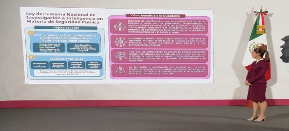 Dijo que la iniciativa contempla la creación de un Consejo Nacional de Inteligencia encabezado por la Secretaría de Seguridad y Protección Ciudadana (SSPC) y operado por el Centro Nacional de Inteligencia.