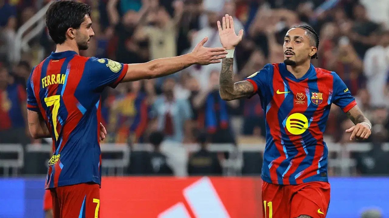 Arabia Saudita.- Sin Lamine Yamal de inicio, al no estar al 100%, y jugando los últimos 20 minutos, pero con Pedri guiando el fútbol de un Barça que firmó la mayor goleada de la Supercopa de España en las seis ediciones disputadas en Arabia Saudita, el equipo de Hansi Flick se impuso (5-0) a un Athletic endeble en defensa.