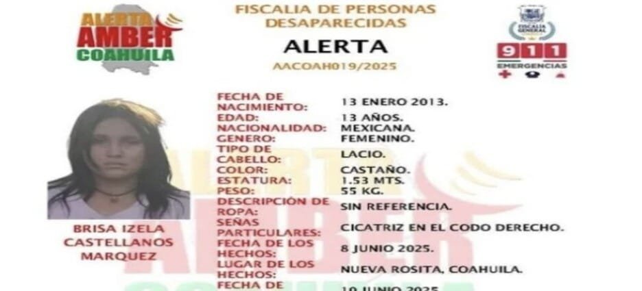 El pasado martes 17 de junio de 2025, la Fiscalía General del Estado de Coahuila informó que fue localizado el cuerpo de una menor de 13 años, identificada como Brisa Izela Castellanos Márquez, en un lote baldío del ejido Santa…