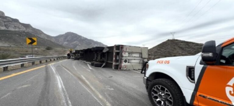 Una volcadura bloquea la carretera Monterrey-Saltillo